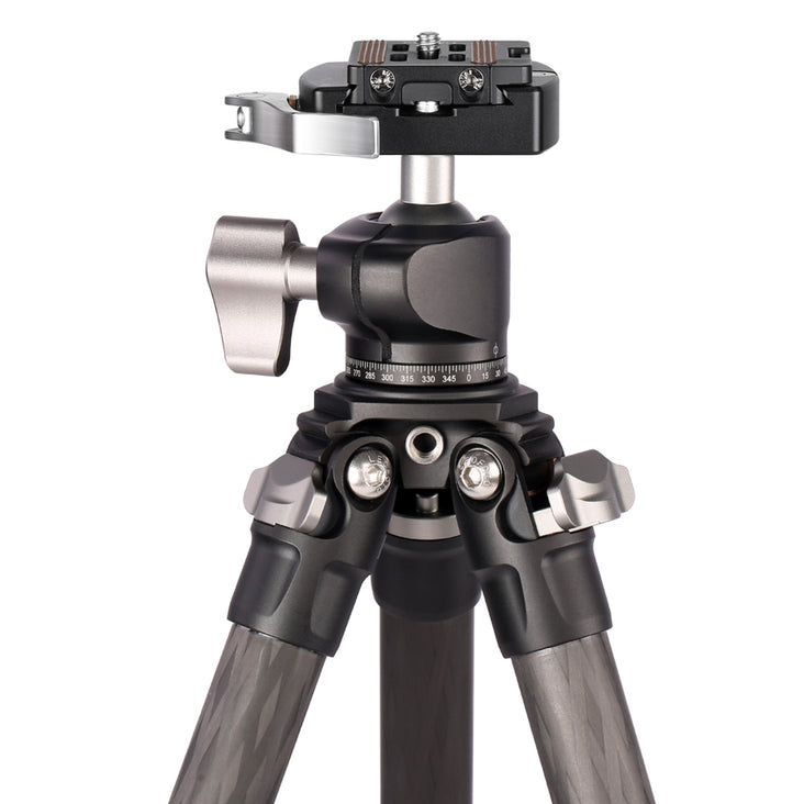 Leofoto LH-25LR Ball Head: The included LH-25LR Ball Head offers high performance with 360-degree rotation, allowing you to position your camera at any angle with ease. The ball head features an ergonomic large main locking knob for smooth and secure adjustments.