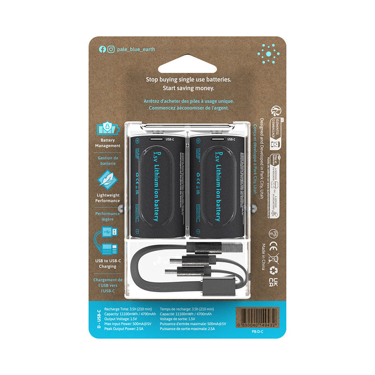 PaleBlue D Lithium Ion USB-C Rechargeable Batteries (2 Pack)