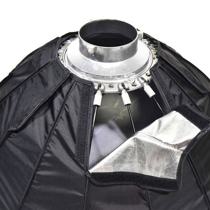The Savage ModMaster Collapsible Beauty Dish combines an impressive amount of light modification options with the convenience of easy storage, transportation and collapsibility. The 16 ribs create an almost perfectly round beauty dish when the included metal deflector dish is used. Remove the dish and Velcro in the soft white internal diffuser to create a soft, diffused look on your subject's face while maintaining higher contrast around the edges. Use the external baffle to convert your beauty dish into a round softbox. For a more directional light source, a grid is also included. (Includes Bowens mount. Optional separate adapters are available for compatibility with most major strobe brands.)