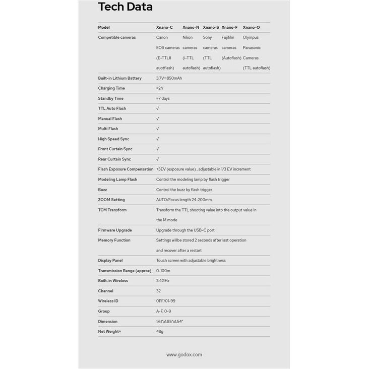 Utilising the advanced 2.4GHz Godox Wireless X system, the X3 enables effortless and reliable management of your Godox lighting setup. The spare channel scanning function prevents interference from other users operating on the same channel. A noteworthy feature is the Wireless Sync-say goodbye to manual matching of trigger and flash. Seamlessly connect the X3 to our upcoming retro camera flash with just one tap.