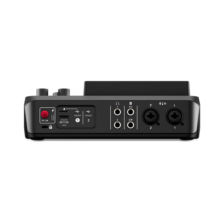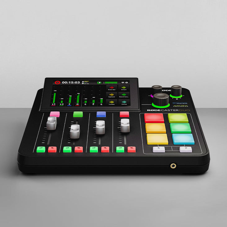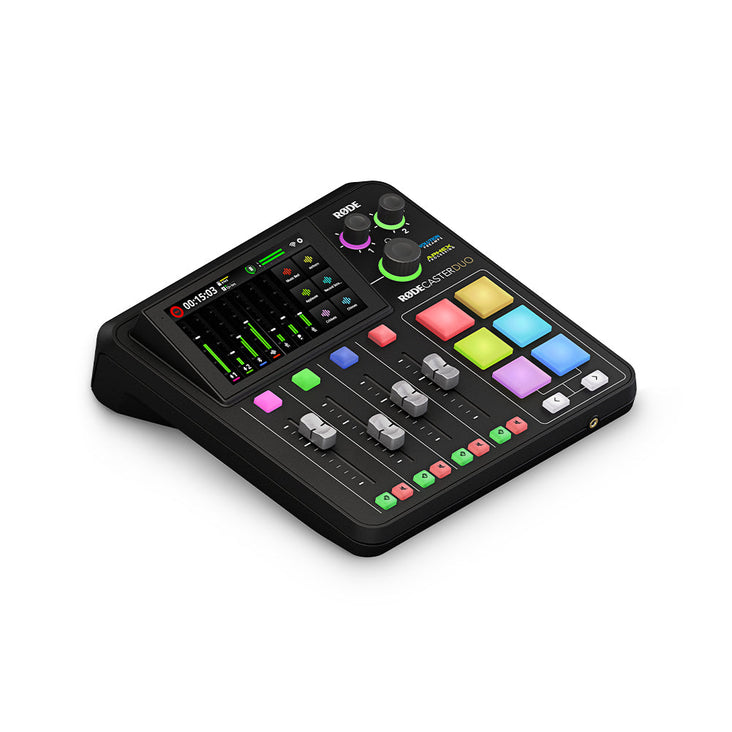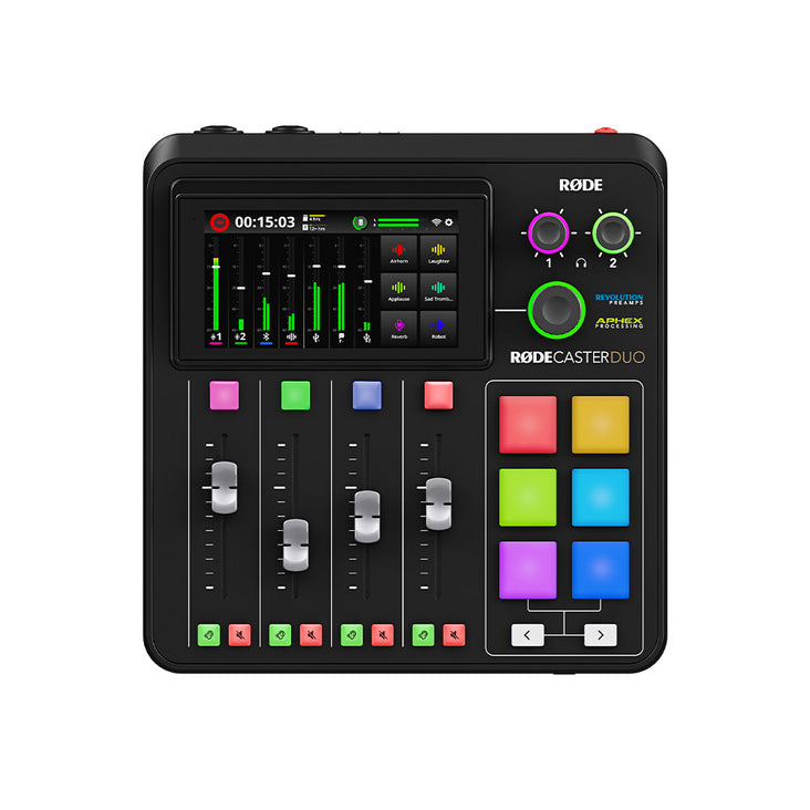 The RØDECaster Duo is a compact and incredibly powerful all-in-one audio production solution for podcasters and content creators. It features two high-quality Neutrik® combo inputs for connecting microphones, instruments or line-level devices, a 3.5mm TRRS headset input, and integrated wireless receiver for connecting RØDE wireless microphones, making it incredibly versatile. Ultra-low-noise, high-gain Revolution Preamps™ and studio-grade APHEX® audio processing delivers pristine audio quality, with dual USB-C interfaces for connecting two computers or mobile devices and Bluetooth connectivity for seamless phone call integration. The RØDECaster Duo is fully customisable, with seven individually assignable channels and six programmable SMART pads for on-the-fly triggering of sound or voice FX and other actions.