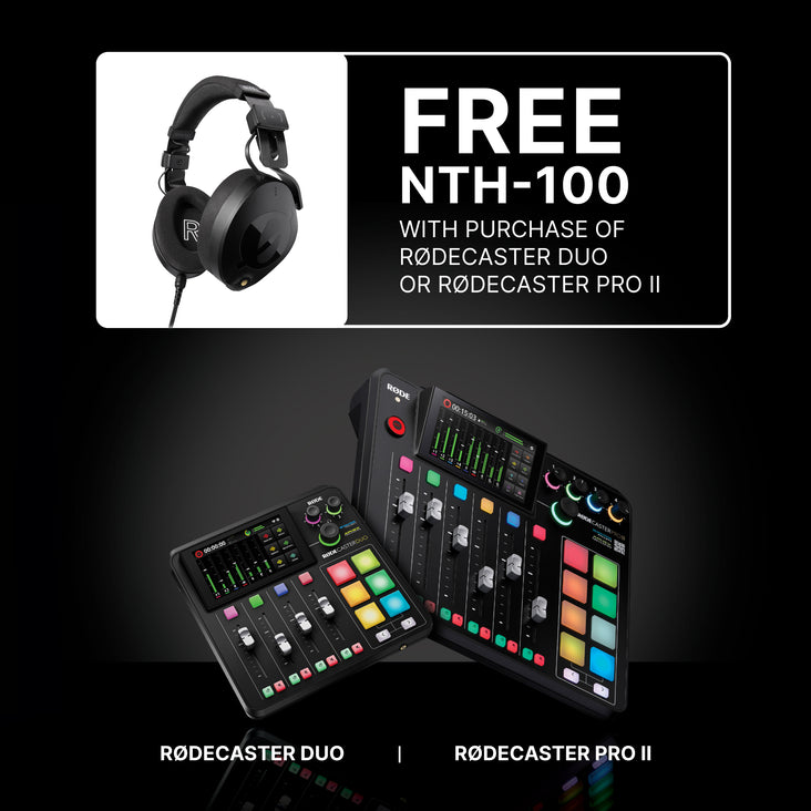 All orders of a RODECaster Duo OR RODECaster Pro II from 10am (AEDT) Monday April 29th until 11.59PM (AEDT) Friday June 28th are eligible to receive 1x Pair of Rode NTH-100 Headphones FREE. While Stocks Last.