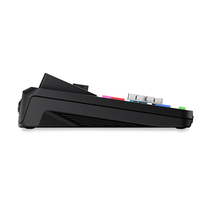 - Seven individually assignable channels with four broadcast-quality physical faders and three virtual faders