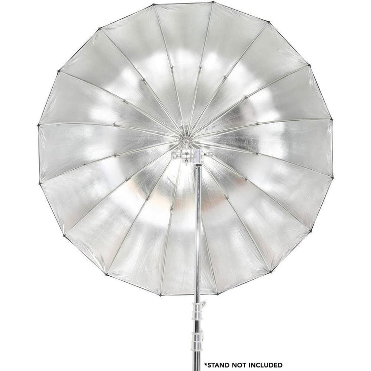 The 65"/165cm Silver Parabolic Umbrella from Godox is a unique modifier that features a deep design, sharp falloff, and a soft but crisp but soft look. On select fixtures moving the light back and forth along the umbrella's shaft "focuses" the output. The reflective silver interior maximises output and promotes a longer throw.