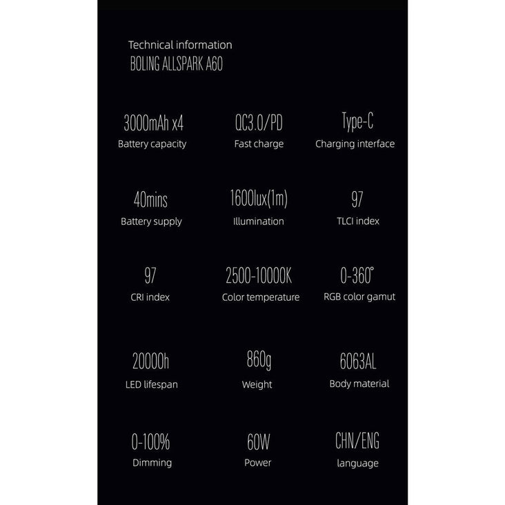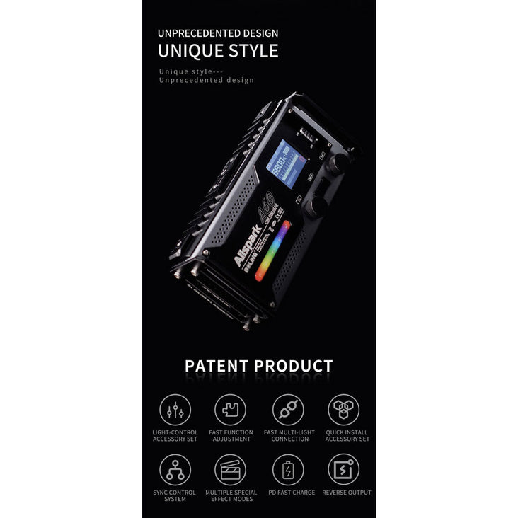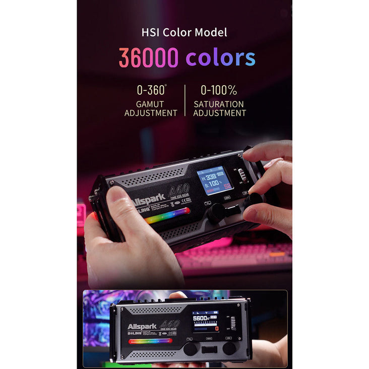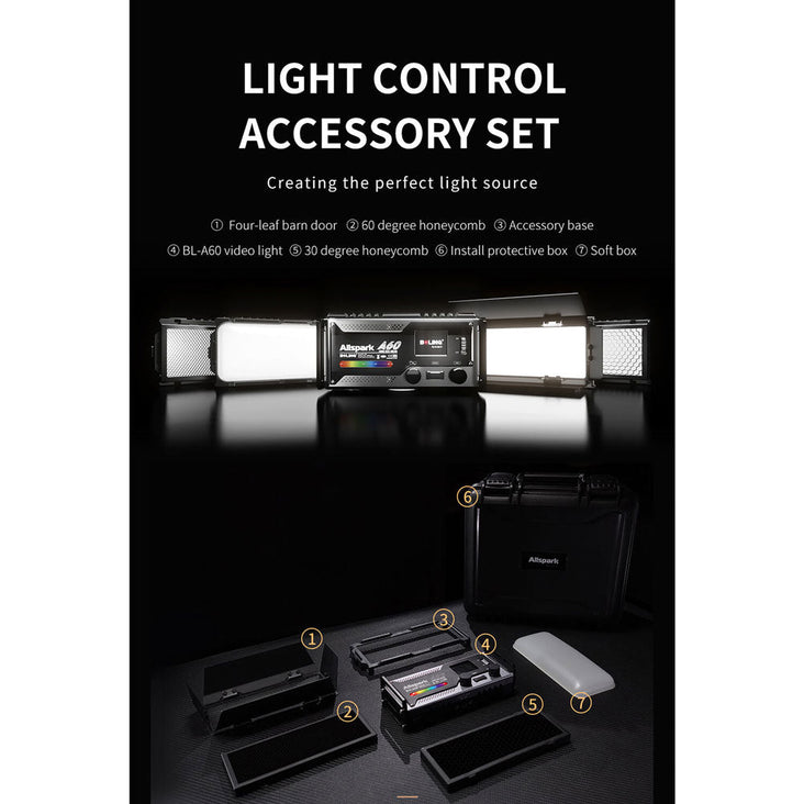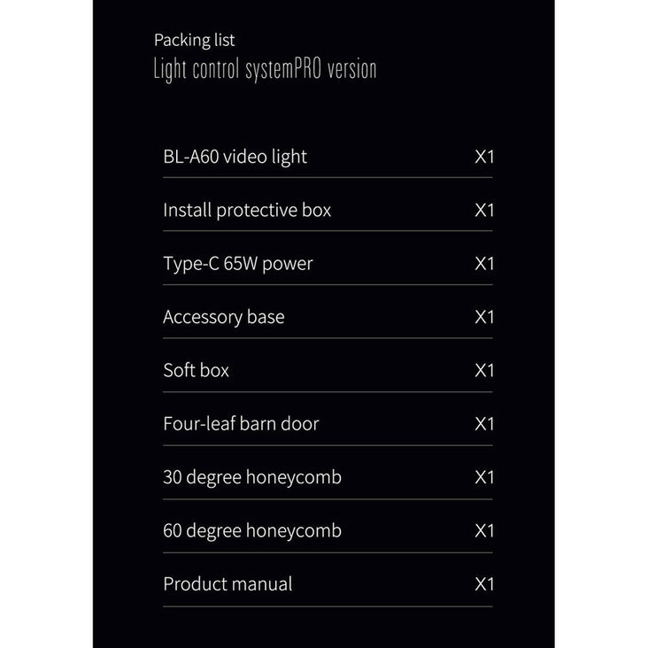 Crafted from durable aluminium, the BL-A60 boasts a slim and compact design. It includes a 65W power adapter, an accessory frame, a diffuser, a 30° honeycomb grid, and a four-leaf barndoor set. With its on/off switch, this on-camera LED light is ready to illuminate your creative endeavours.