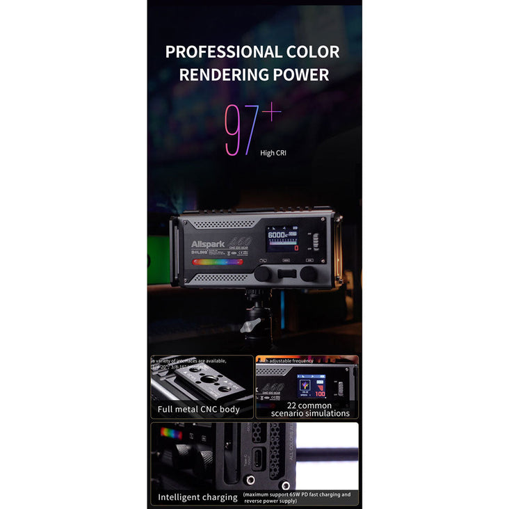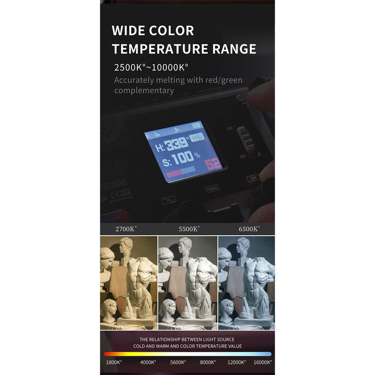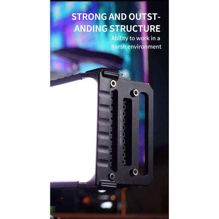 Powered by a built-in 3000mAh battery, this light provides up to 40 minutes of continuous runtime. Recharging is a breeze with the USB-C power input. The fan cooling system ensures efficient heat dissipation and comes with multiple modes to adapt to various environmental conditions. The rear LCD features two control dials and a side button for easy navigation.