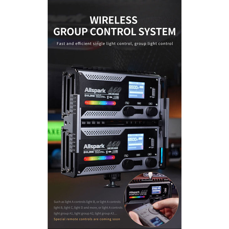 In addition, the BL-A60 offers the convenience of working in a lighting group. By wirelessly connecting it to a master light, you can effortlessly control multiple slave lights with identical settings and effects.
