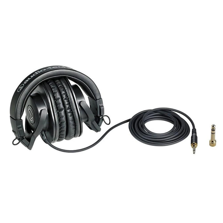 The M-Series ATH-M30x professional monitor headphones combine modern engineering and high-quality materials to deliver a comfortable listening experience, with enhanced audio clarity and sound isolation. Tuned for highly detailed audio, with strong mid-range definition, these versatile monitoring headphones are ideal in a variety of situations. Designed primarily for studio tracking and mixing, they offer added features for increased portability, making them a great choice for field recording.