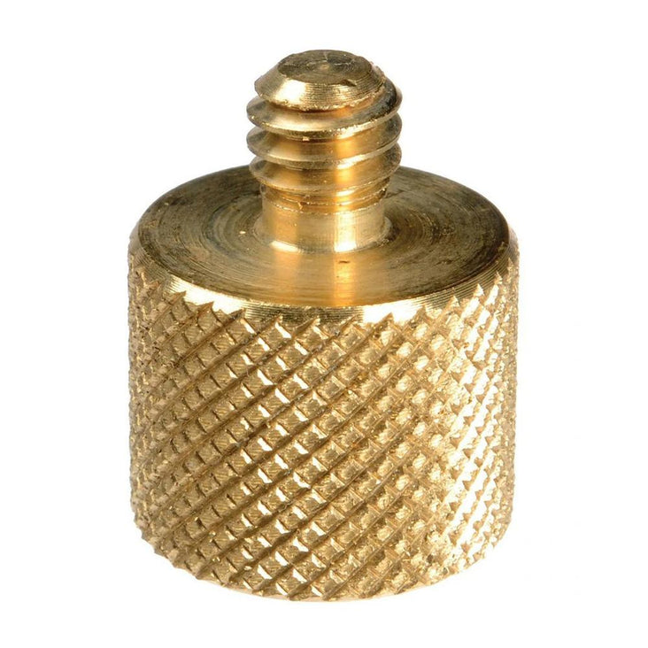 The 3/8" Female to 1/4" Male Gold Thread Adapter Converter Screw reduces a 3/8" threaded screw to a standard 1/4"-20 tip.