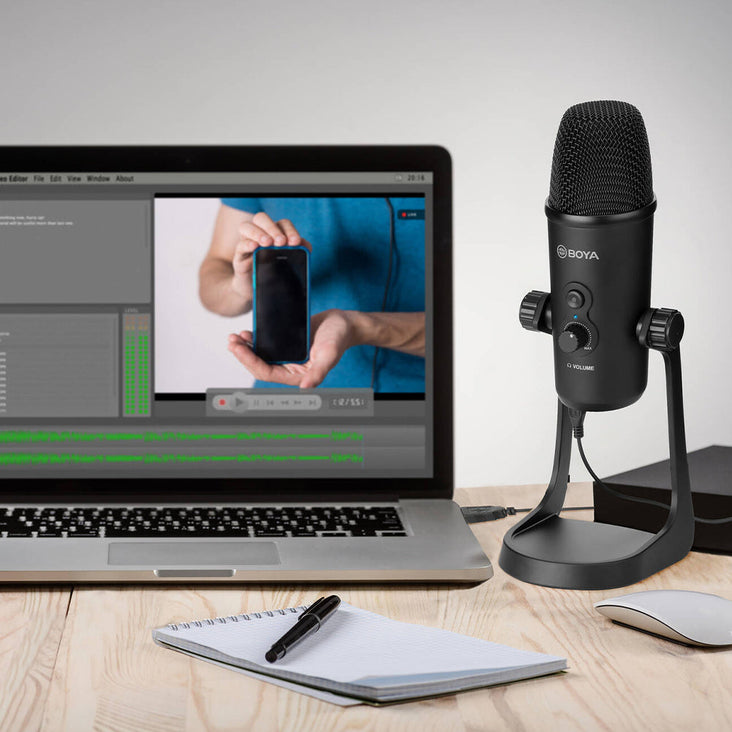 The BOYA BY-PM700 USB condenser microphone is compatible with both Windows and Mac Computers. Its polar pattern knob lets you shift easily from omni-directional, Cardioid, Stereo and bi-directional pickup modes.