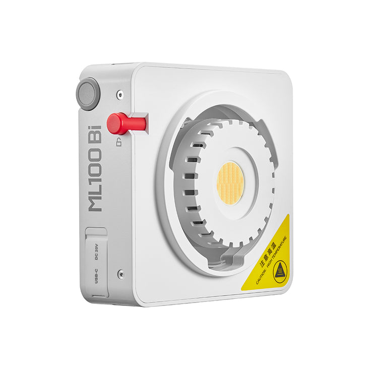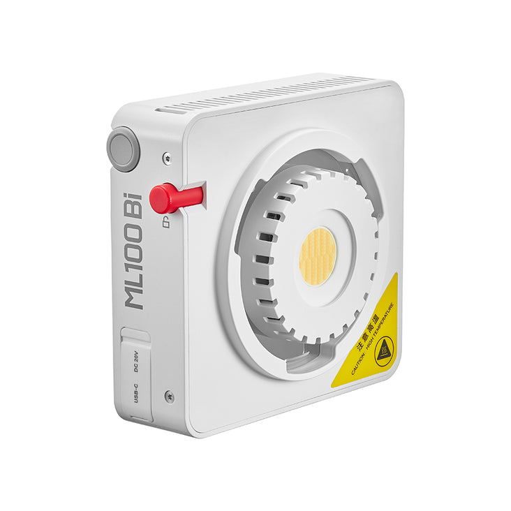 The GODOX ML100Bi is an ultra-compact 120W Bi-colour COB LED studio light, designed to combine excellent versatility and performance in a compact package. Measuring a mere 12.2cm x 11.0cm x 4.6cm and weighing in at 487g, this 120W LED studio light is a tiny force to be reckoned with. Utilising the super-compact Godox-Mount, the ML100Bi is compatible with Godox's ever-expanding range of Godox-Fitting Light modifiers. With its high TLCI rating of 97+ and CRI rating of 98+, the ML100Bi is suitable for broadcast usage. Along with multiple power options including mains, V-Lock, or even a USB power bank, you can rest assured the ML100Bi will be ready for any situation. The ML100Bi is perfect for vloggers, YouTubers, as well as for run-and-gun-styled video production.