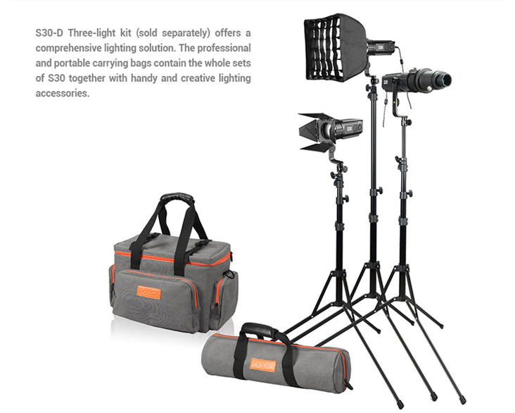 Godox S30 5600K Focusing LED Light with SA-08 Barn Door