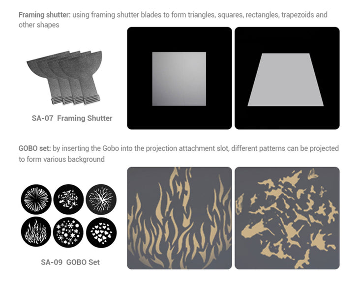 - Use abundant accessories to generate creative light effects (sold separately, optional)