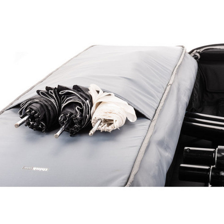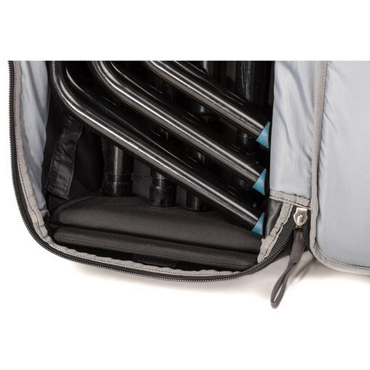- Stretchable pocket along the interior of the main compartment lid provides space for lighting umbrellas or background support components
