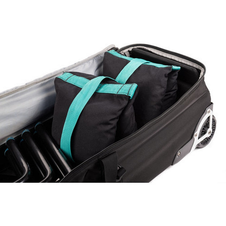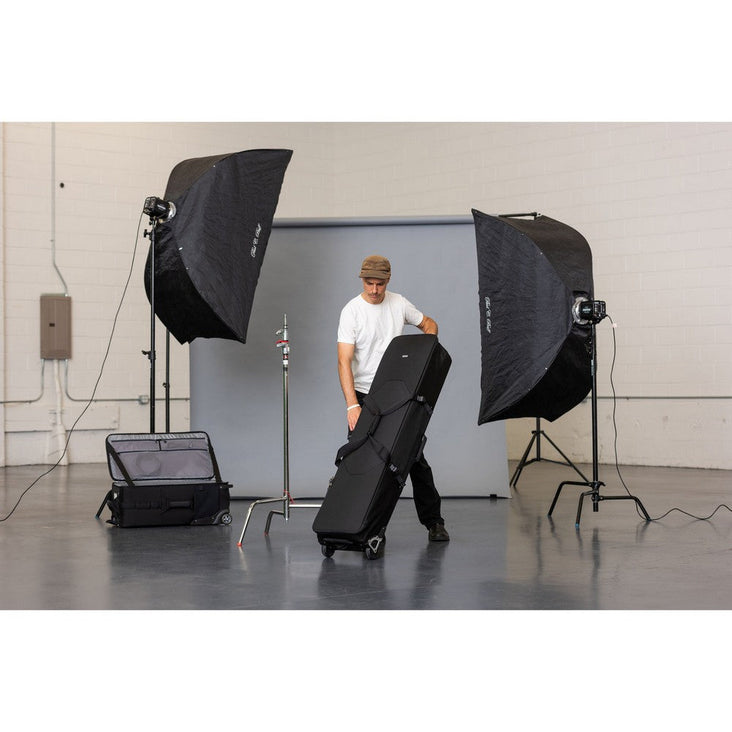 - Rolling case with shock-absorbing, user-replaceable wheels for assorted light stands and lighting accessories