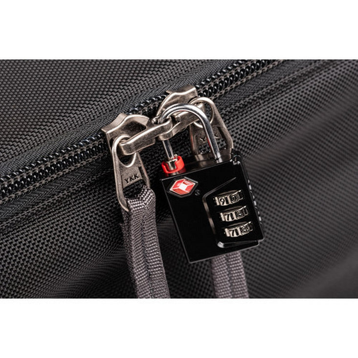 - Main compartment's two adjoining zipper pull tabs each feature shackle holes, allowing a separately available TSA-accepted lock to keep items within the main compartment secure