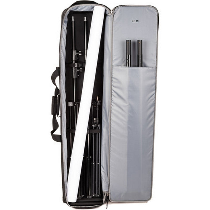 The Stand Manager 52 from Think Tank is a rolling case with shock-absorbing wheels for assorted light stands and lighting accessories. Its main compartment measures up to 52 x 12 x 7.5" and can hold up to four turtle-base C-stands or multiple tripod-base light stands of varying sizes.