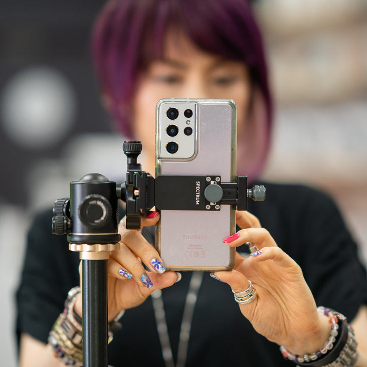 Take your mobile content creation to the next level with the Spectrum Professional Metal Phone Bracket, designed for creators who need versatility and stability. With multiple 1/4" screw thread mounting points, a cold shoe mount, and Arca-Swiss compatibility, this bracket makes it easy to attach accessories and mount your phone securely to a variety of professional gear. Ideal for vloggers, live streamers, and photographers, it turns your smartphone into a powerful tool for producing high-quality content.