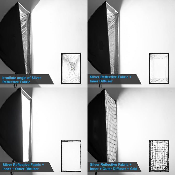 This softbox includes two high-density diffuser panels to adjust the diffusion level, allowing you to create either soft, enveloping light or add contrast and depth as needed for your shots.