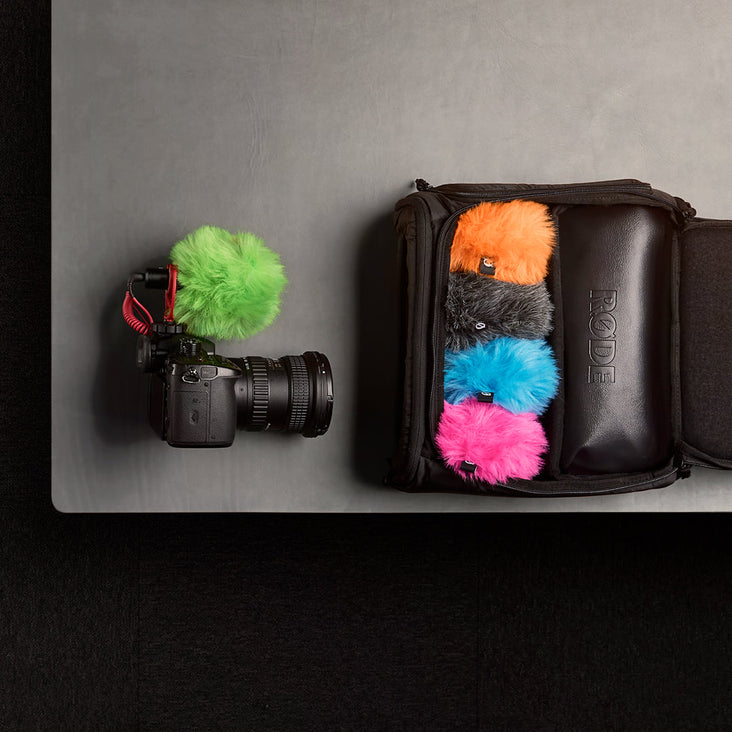 A deluxe furry windshield, available in four separate colours, for the VideoMicro and VideoMic Me range. The Rode WS9 Deluxe Windshield for Rode VideoMicro & VideoMic Me-L (Orange) features an open-cell foam covered by synthetic fur, designed to minimise wind noise when recording outdoors.