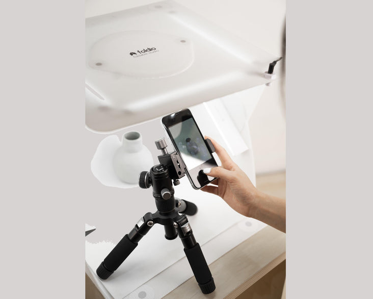 The new upgraded Tripod50 now includes a Pan Bar. The best mini-tripod for product photography and video, the perfect accompaniment for your Foldio studio.