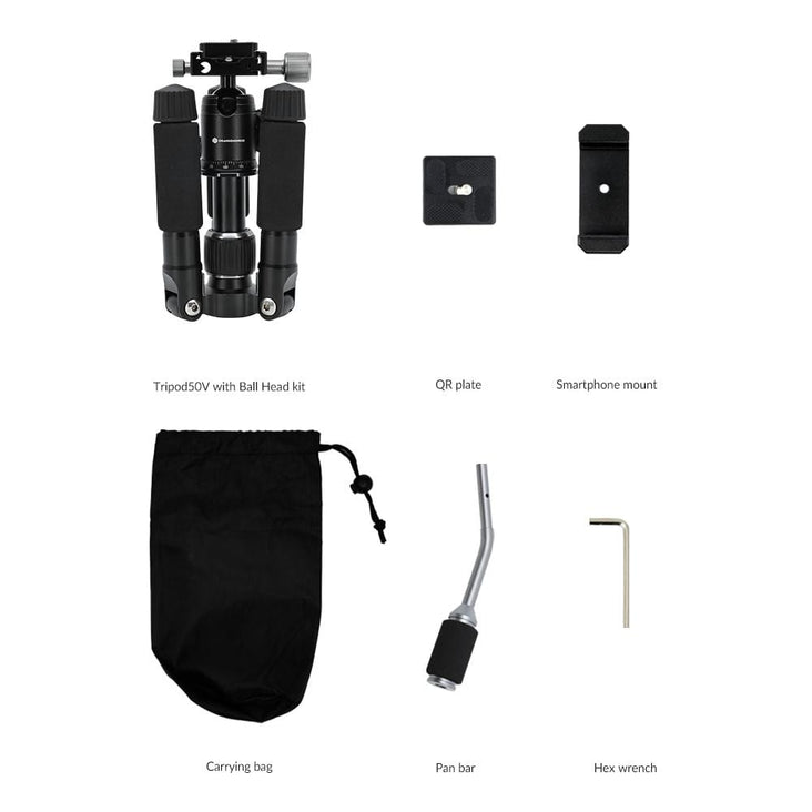TRIPOD50V Mini-Tripod with Pan Bar for Smartphones and Cameras - Bundle