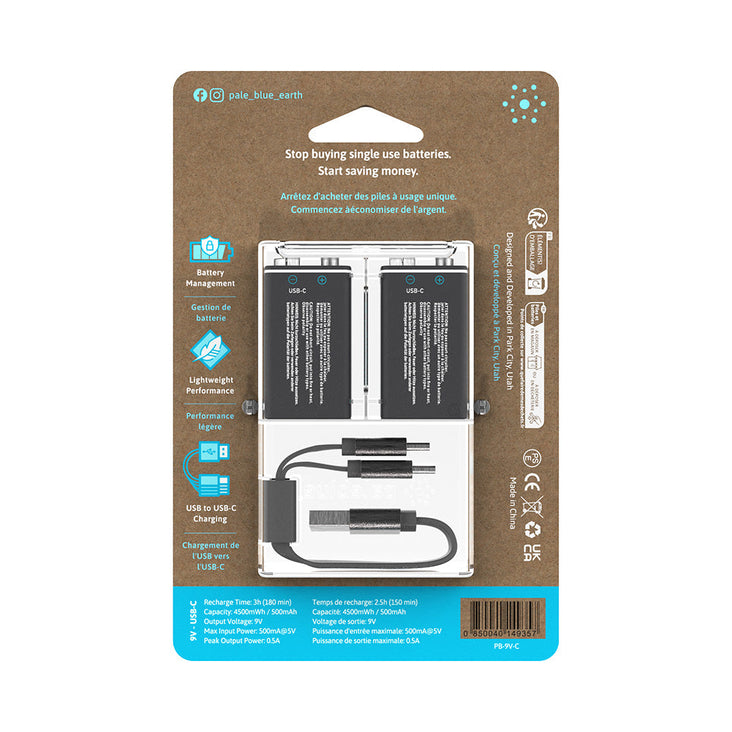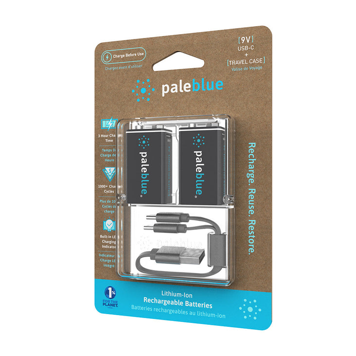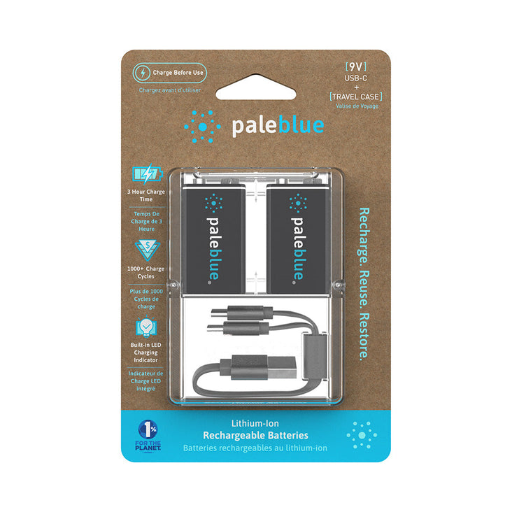 PaleBlue 9V Lithium Ion USB-C Rechargeable Batteries (2 Pack)