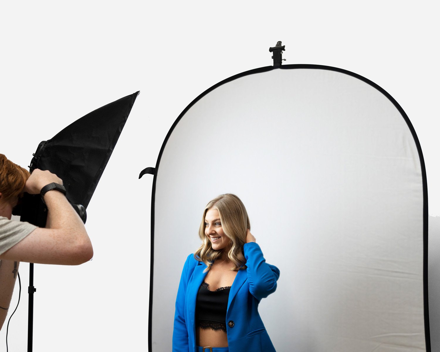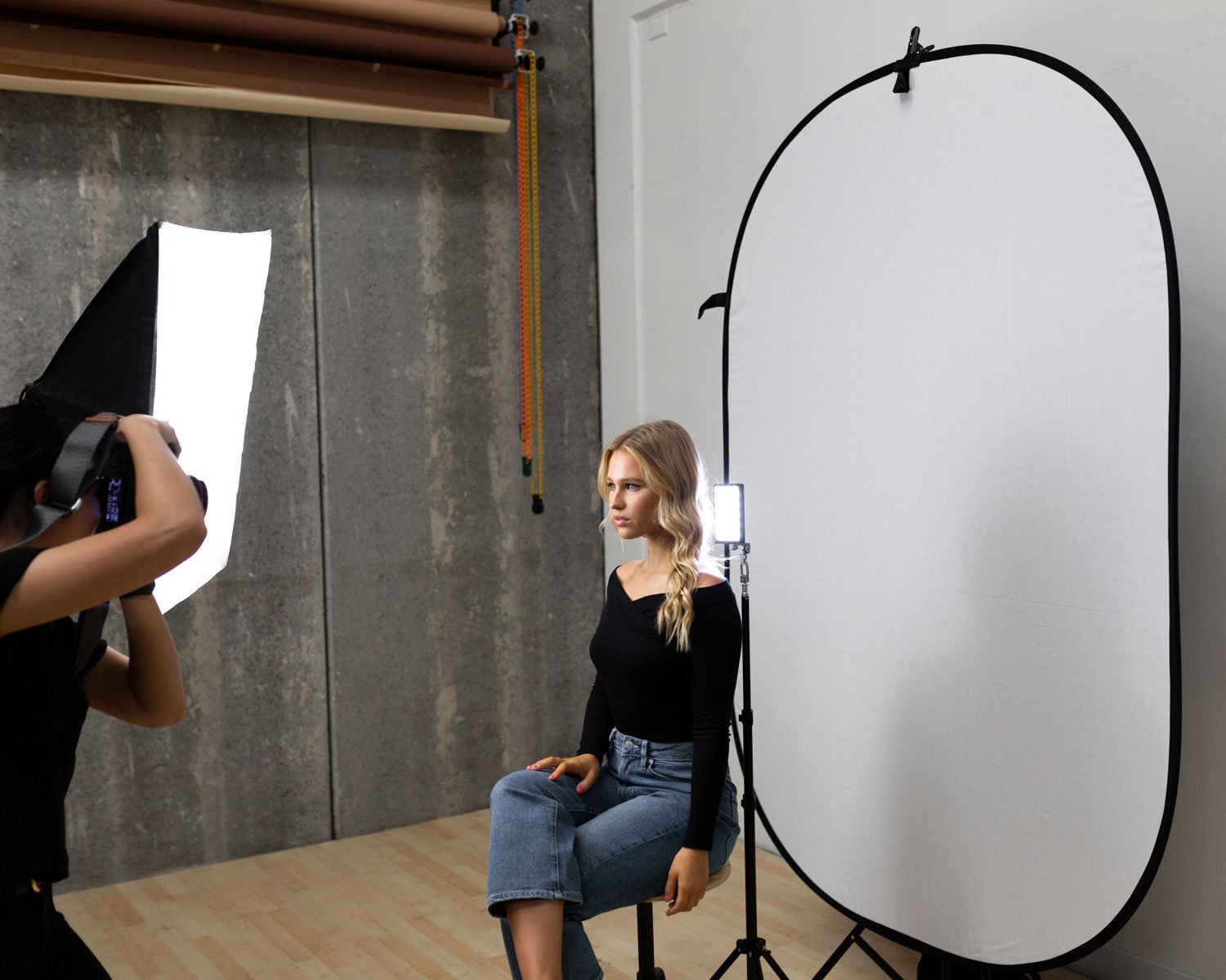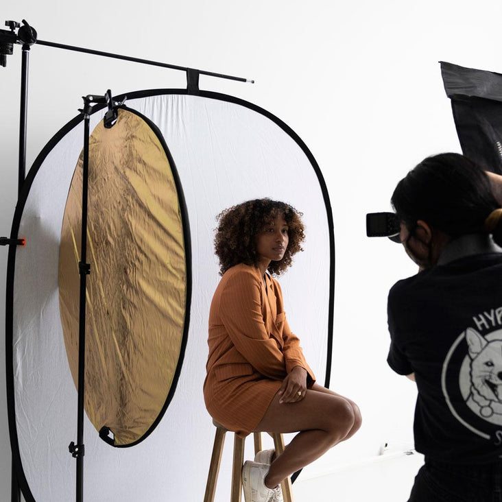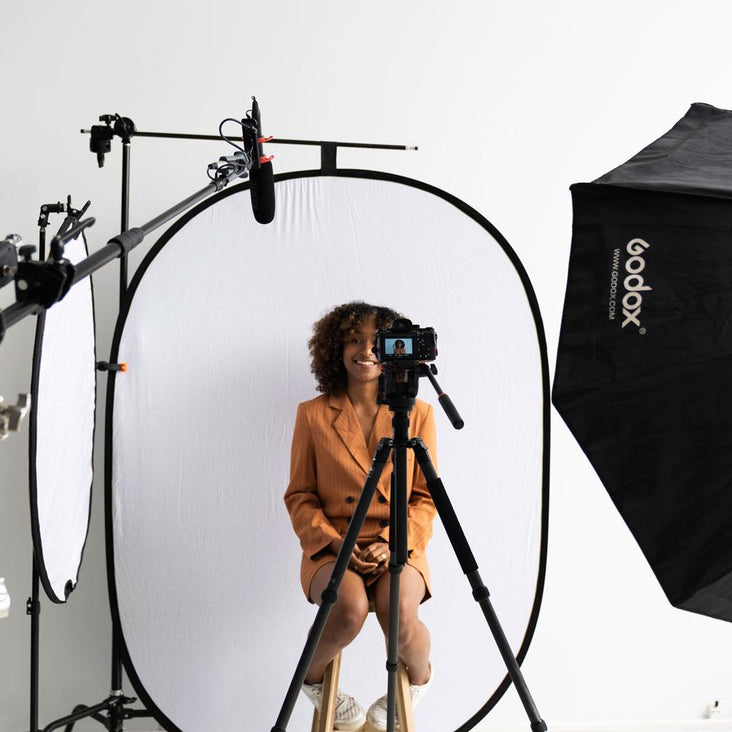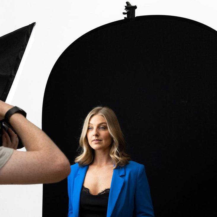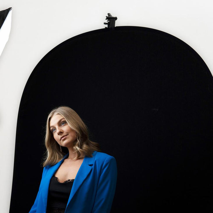 Our range of Pop Up Backdrops are made from a thick, non-reflective 150gsm cotton muslin and feature a solid Black colour on one side and a solid White colour on the other. The white side of the backdrop is versatile in the field or in studio as it provides shadow lightening detail on your subject, using available natural light or studio lighting. It doubles as a backdrop or as a traditional white reflector.