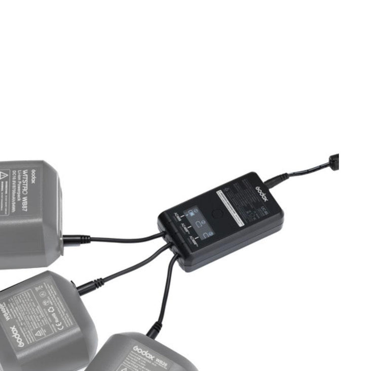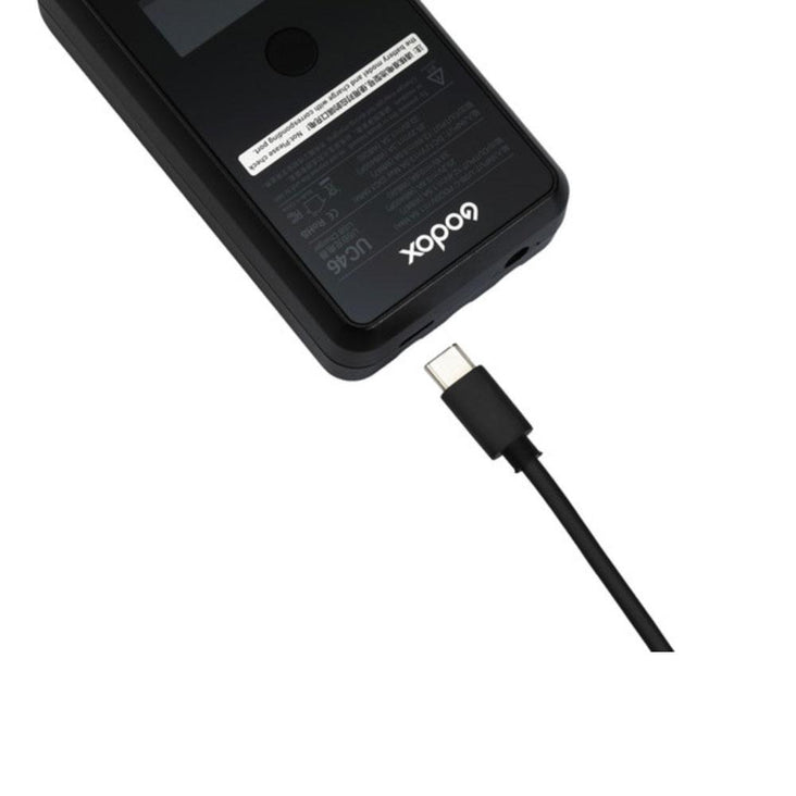 This Godox UC46 USB Charger is a USB Type-C and DC-powered battery charger designed for rechargeable Godox WB400P, WB87, or WB26 batteries for AD400Pro, AD600Pro & AD600.