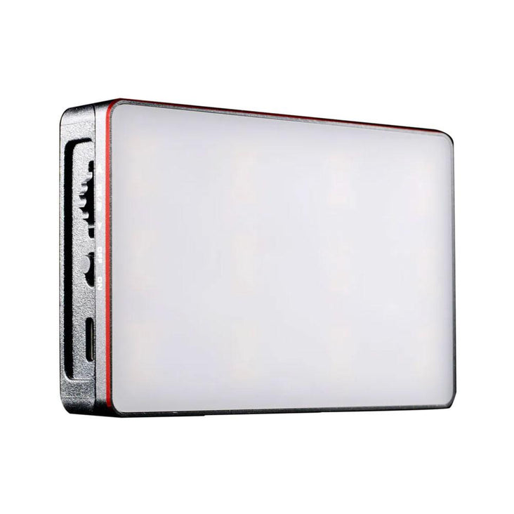 The fixture is dimmable from 100 to 0% brightness, has 360deg of hue control, and 100 levels of colour saturation adjustment. It features a CRI rating of 96 and a TLCI rating of 97, and the MC LED light has a colour temperature range of 3200 to 6500K adjustable in 100K increments. In addition to the HSI and CCT settings, the light has nine built-in FX settings.