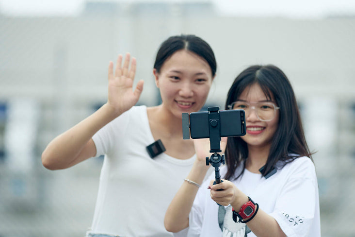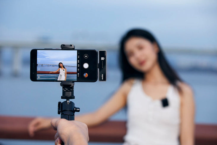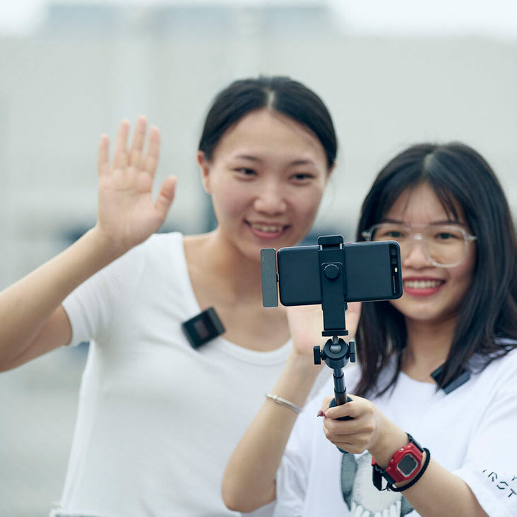 The two-channel receiver plugs into your phone's Lightning port, which supplies it with power and makes it easy to record videos with two presenters on camera at once while keeping your rig small and lightweight.