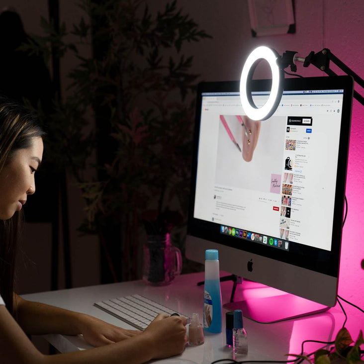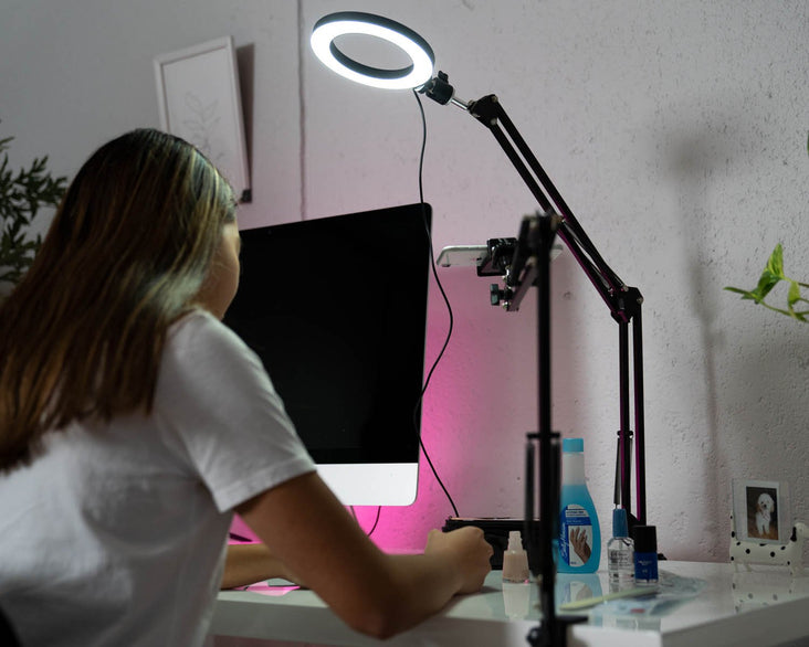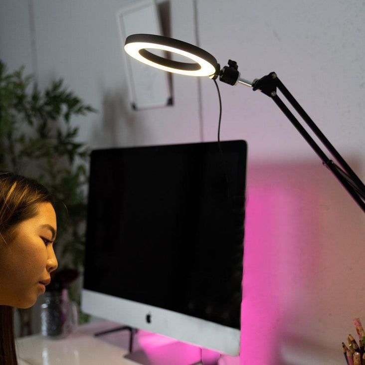 Ever experience poor lighting in your work studio? Does your artwork sometimes appear too cool, warm, bright or dull? Meet the "Inner Artist" 6" Desk ring light, the perfect work companion for your artistry needs. The light you work under is the single most important factor in creating artwork as it determines the colours you see in your artistry. It is important that you put in the effort into setting up your workspace lighting correctly for optimum working conditions and improve your artistry whether it's painting your nails, drawing, constructing a model or producing a How-to video for Youtube!