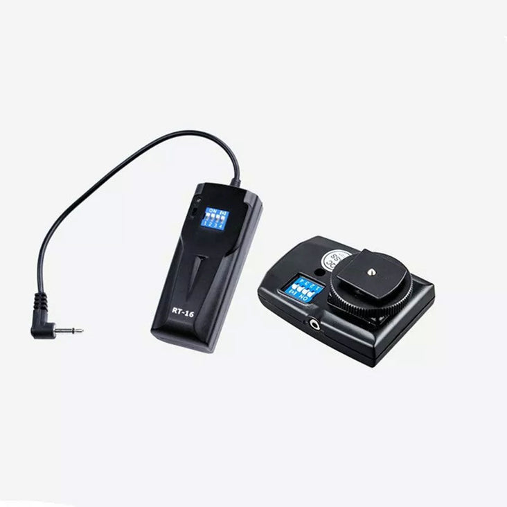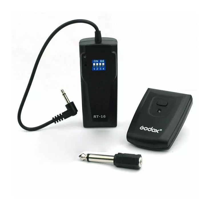 The Godox RT-16 Wireless Flash Trigger Set is a reliable, high-performance tool designed to enable remote triggering of studio and portable flash units. Operating on a 433MHz frequency with 16 selectable channels, this flash trigger set provides seamless flash synchronization for studio photographers. With an impressive 30-meter working range in open areas and low power consumption, this trigger set is ideal for professional or hobbyist photographers looking to expand their creative options. The transmitter and receiver are easy to install, providing long-lasting battery life and consistent, dependable performance in any shooting environment.
