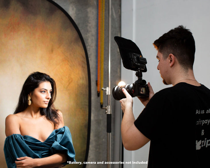 The Falcon Eyes RX-8T Portable Flexible LED Light is lightweight and foldable, offering ultimate light shaping for shooting on location. It's included ball head mount allows ultimate manoeuvrability on either a light stand or directly on your camera hot shoe. It's inbuilt 90 LED bulbs offers 5600K colour temperature with a CRI rating of 95+ mimicking daylight.