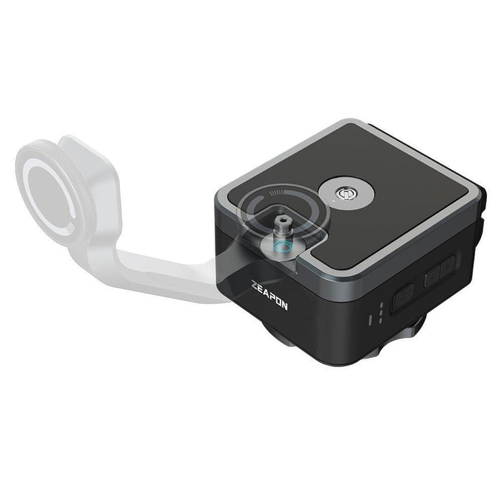 Experience Zeapon's innovative fully hidden port, compatible with 1/4 & 3/8 standard screw caps. Safeguard your equipment with a simple press and rotation, ensuring protection in transit. Flip the pan head for use as an electric turntable when the screw cap is hidden.