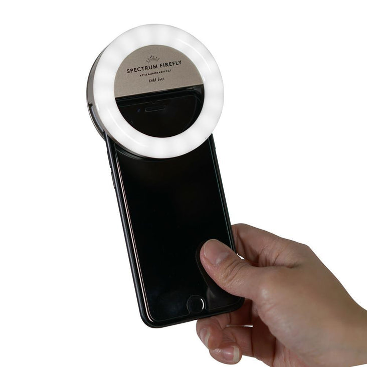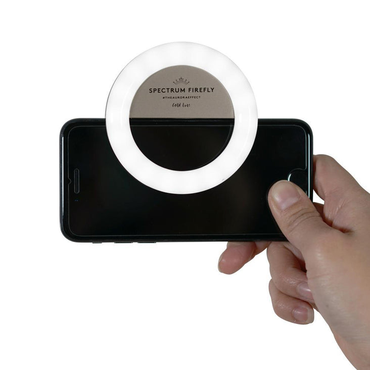 Our Spectrum Firefly Light (Gold-Luxe model) is perfect for taking selfies or photos in low light areas. It features an adjustable cool to warm colour temperature for a natural daylight glow or a golden glow. It's small enough to be stored in your handbag and ready to be used to take that perfect picture 24/7.