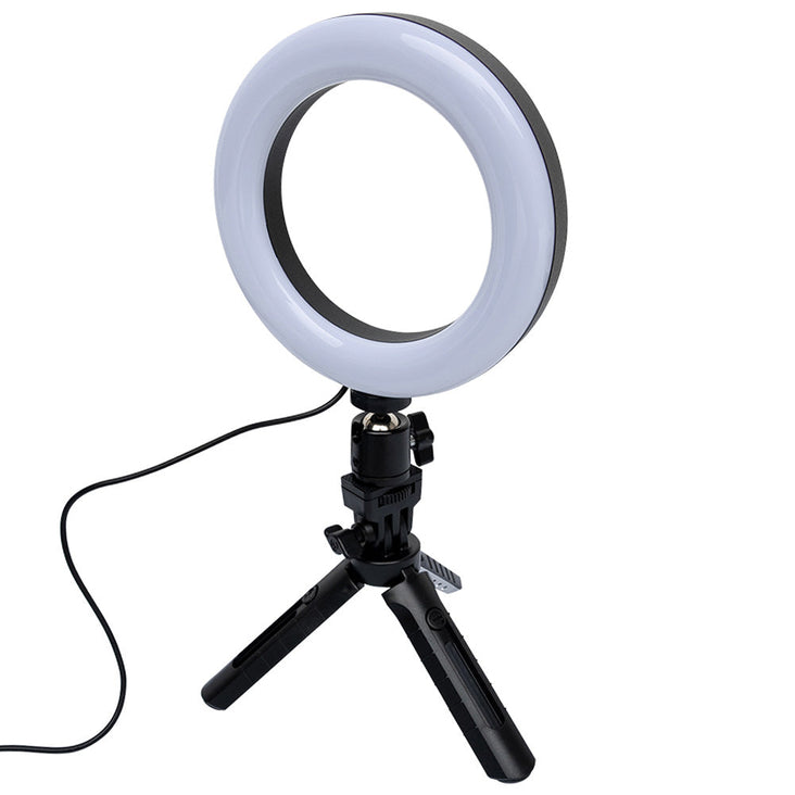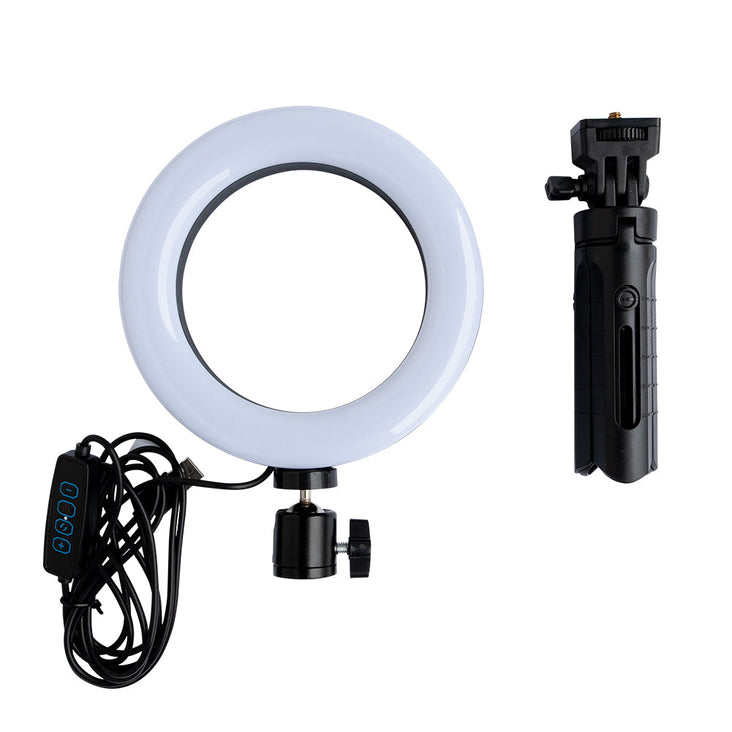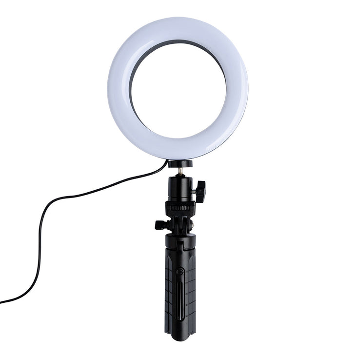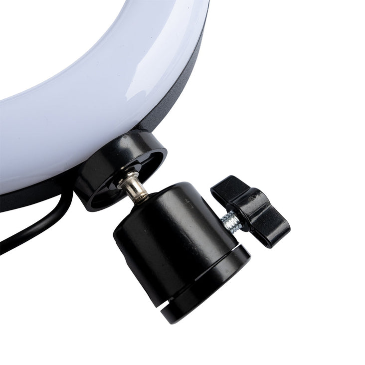 Introducing the Jamie 6.5-inch Tabletop Ring Light – your compact companion for professional-quality lighting in any setting. Measuring at a convenient 6.5 inches, this tabletop ring light is ideal for on-the-go use, fitting seamlessly into your home studio, office desk, or travel bag.