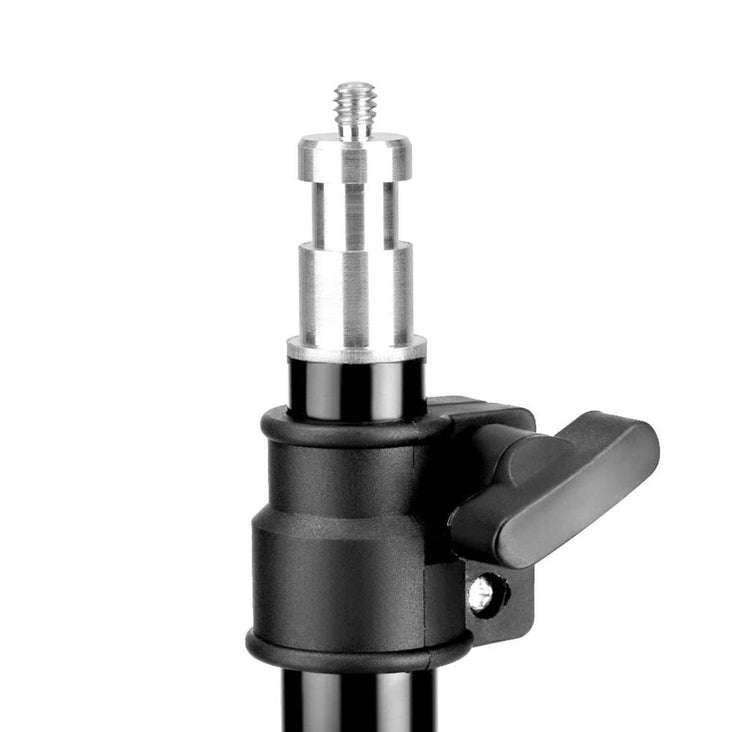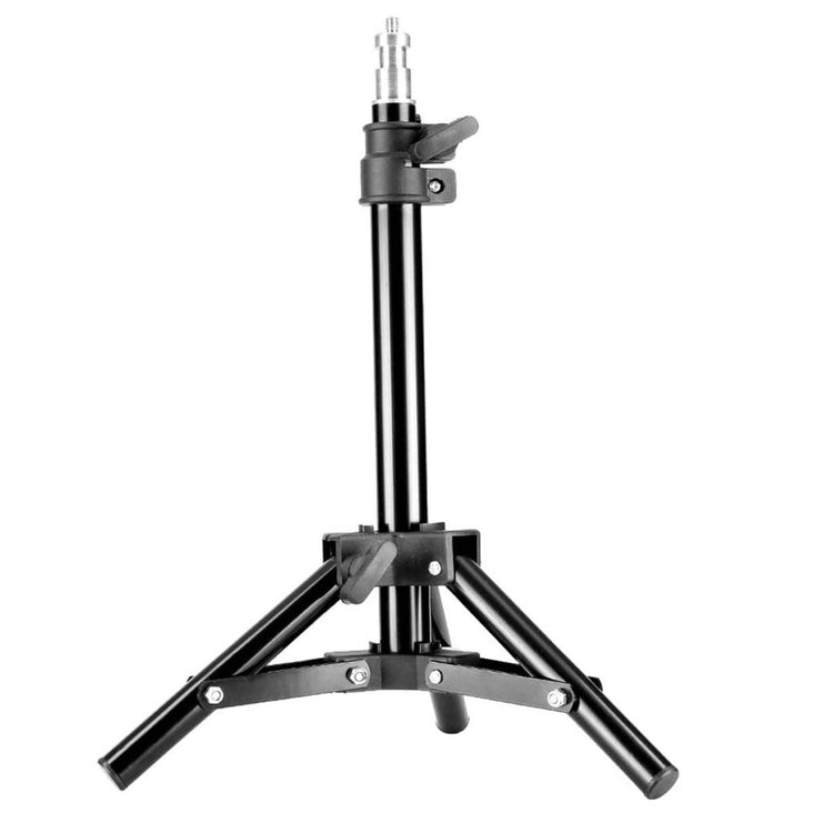 The 80cm Mini Light Stand Desk Tripod is a 2-section light support that easily secure into place. The small footprint of the stand makes it ideal for placing on desks and small tables. It has a 5/8" stud top with a 1/4"-20 thread and is perfectly suited for a tabletop or desk to mount different photo and video lighting and accessories including: