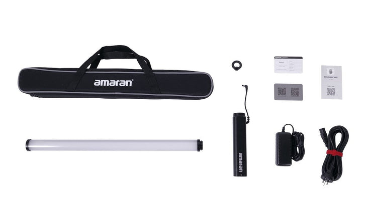 The T2C can be operated using the included AC Power Supply or included custom Battery Grip that securely locks into place on the end of the tube and provides up to 4 hours of continuous use at max output. You can also attach a tool-less, collapsible 45° light control grid* to the tube to limit spill light and enhance their lighting design, or leave the tube bare with its over 180° aperture, giving you more coverage in your shot design. The Amaran T2c is a compact, lightweight, and portable tube light that is versatile enough for any project and is the perfect addition to your lighting kit.
