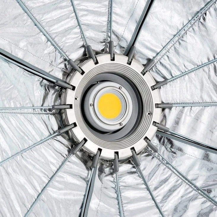 The Light Dome 150's expansive 5 foot (150cm) transforms Bowens Mount point-source lights into a massive soft source, elegantly illuminating large spaces.