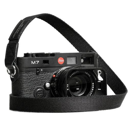 Carry your mirrorless camera with the stylish yet strong black ACAM-102 Camera Strap from Artisan & Artist's Classic series. The high quality webbed acrylic and leather strap is a comfortable 0.8" wide and a fixed 35.4" long. The strap attaches to your camera via metal rings, with leather flaps at both ends to protect your camera body from scratches while in use
