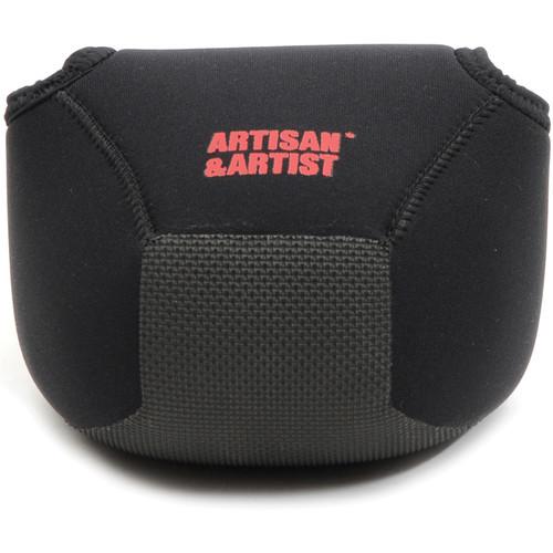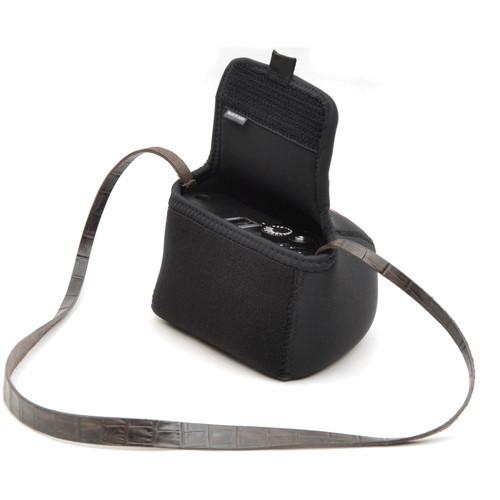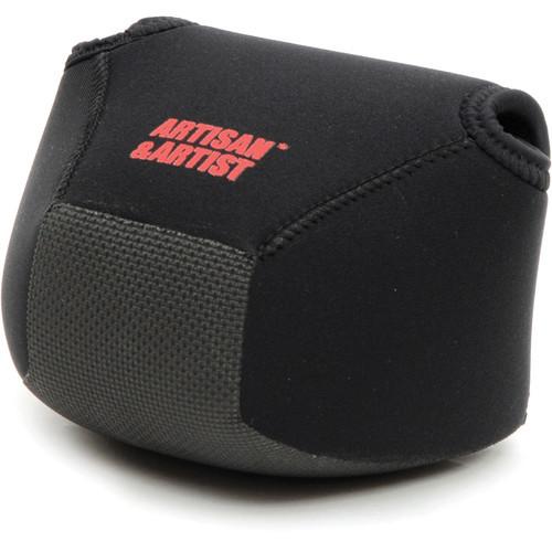 The ACAM-414 Camera Pouch from Artisan & Artist gently protects your camera allowing it to be smoothly taken in and out of the pouch. Because the material is soft and elastic, it fits snugly around the camera body. Placing the camera in the pouch protects it from shocks and scratches. As the camera body can fit in the case with a strap attached, you can carry the camera in its pouch while hanging the camera strap around your neck. The pouch can hold a Leica M body with a Summicron 28mm lens or single lens reflex camera, such as a Nikon FM2 body with a 50mm f/1.4 lens, or other similarly sized cameras.