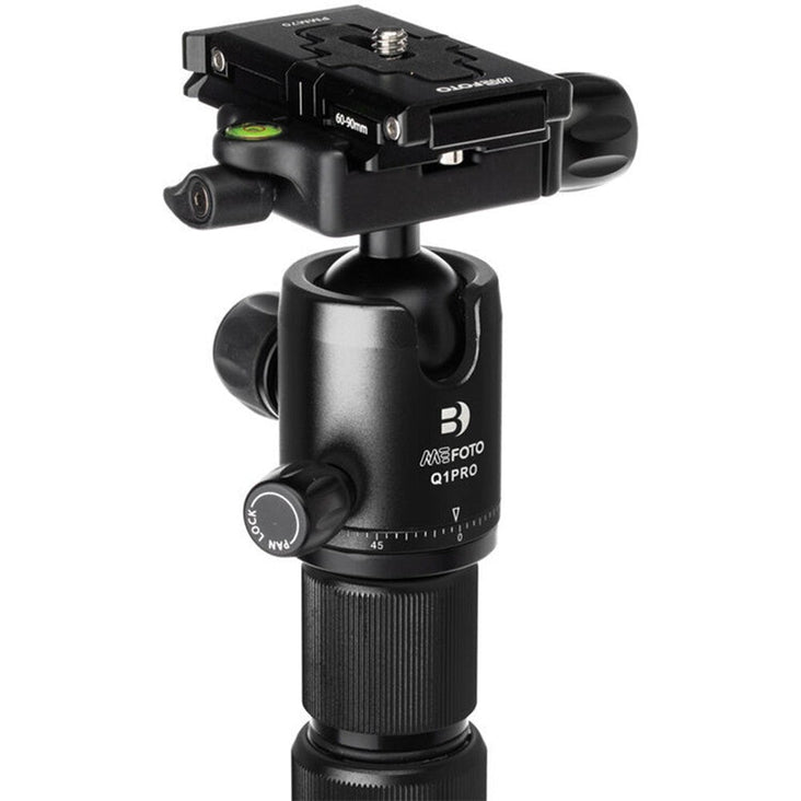 The included Q-series triple-action ball head contains separate adjustments for pan and ball lock as well as an additional pan lock on the QR plate for even more accurate panoramic shooting. It includes an innovative PMM70 convertible phone holder QR plate, to easily switch from camera to phone in a snap, without changing heads or plates. The Arca-type compatible convertible plate mounts in portrait or landscape orientation, allowing quick and easy photography and social content capture in the same setup.