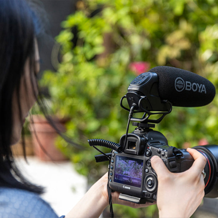 The BOYA BY-BM3032 is a super cardioid on-camera shotgun microphone offering directional audio capture, adjustable gain (-10dB, 0, +20dB), High Pass Filter (0Hz, 75Hz, 150Hz), and broad device compatibility for video production, vlogging, YouTubers, and sound recordists.