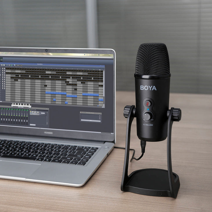 The BOYA BY-PM700 USB condenser microphone is compatible with both Windows and Mac Computers. Its polar pattern knob lets you shift easily from omni-directional, Cardioid, Stereo and bi-directional pickup modes.