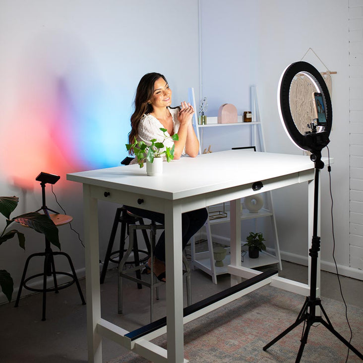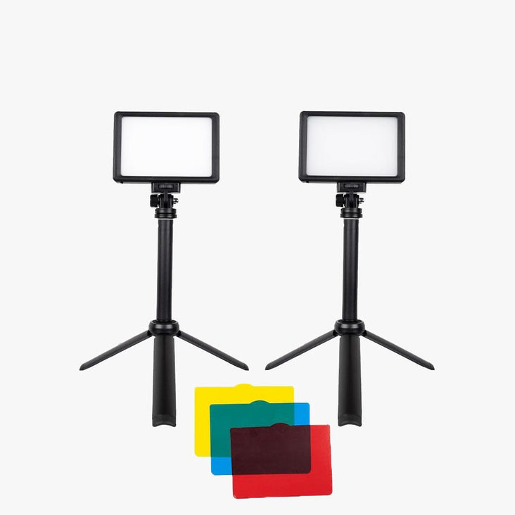 The Crystal Air Lighting Desk Kit is lightweight and easy to use and perfectly paired with the Diamond Luxe III Ring Light. With interchangeable colour gels you can use them to add colour accents to your videos or create unique photos for social media. They also feature desk stand and are USB powered so ideal for a desk or studio setup.