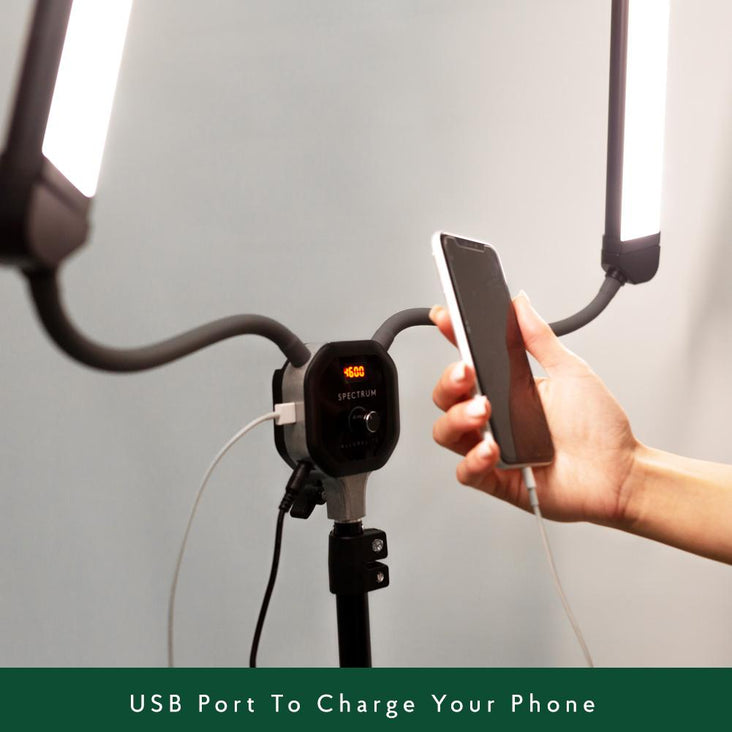 The 360 degree rotation and bendable arms allows you to add light precisely where you need it, while the integrated USB port keeps your device charged for unlimited use!