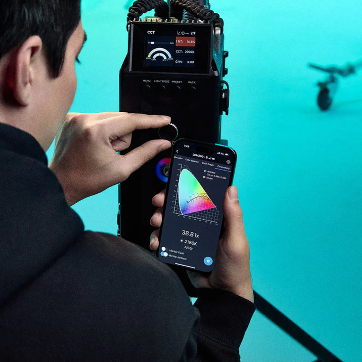 The value-added combination of having both a light and colour meter in one convenient, Bluetooth-enabled device gives you multiple products for the price of one. The meter's remote functionality delivers all the valuable info you need in real-time to your phone in a clear, concise format while eliminating the need to run back and forth to your camera, saving you time and effort.