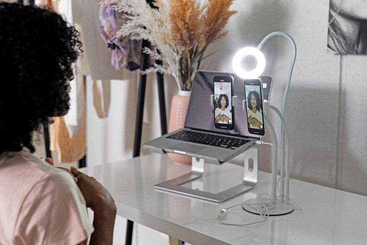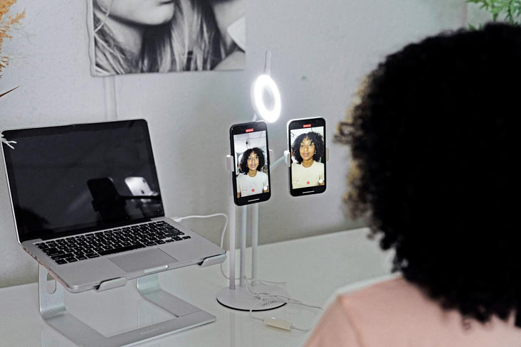 Double the trouble with the 'Jasper' Dual Phone Mount Live Streaming Ring Light Kit. Perfect for streamers who want to stream to two platforms at the same time! No need to pick one, you can do both!