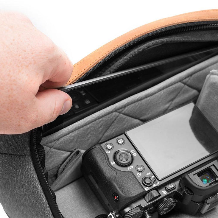 As the smallest, lightest bag in our Everyday Line, the Everyday Sling 5L is ideal for organization, transport, and quick-access of essentials, whether you’re carrying camera, drone, or everyday gear. Wearable as a cross-body sling or a waist bag, the Sling’s convertible strap features a quick-adjuster that you can loosen when accessing gear and tighten when actively hiking or biking. A weatherproof zip provides quick inner access without removing the bag from your body. FlexFold dividers allow instantly customizable organization and protection. Padded tablet sleeve holds most tablets up to 11" (see specs tab for tablet compatibility) and inner flap compartment contains 4 small stretchy pockets for batteries and cards. Weatherproof 400D nylon canvas shell.